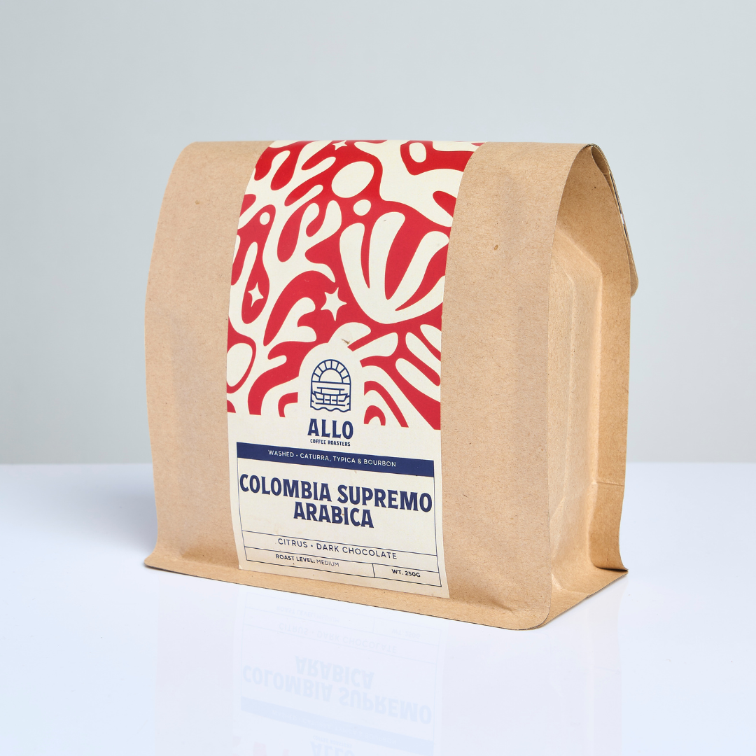 Colombia Supremo Arabica beans deliver a bright, complex cup with dark chocolate and citrus tasting notes.